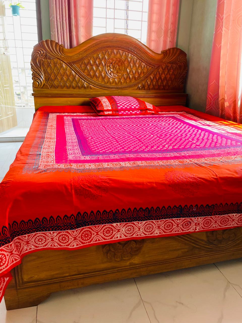হ্যান্ডমেড ব্লক প্রিন্ট বেডশিটগুলো তৈরি করা হয়েছে ঐতিহ্যবাহী ব্লক প্রিন্টিং টেকনিকে, যেখানে কাঠের ব্লকের মাধ্যমে ডিজাইন কাপড়ে প্রিন্ট করা হয়। প্রতিটি বেডশিট ইউনিক এবং স্টাইলিশ, যা আপনার বেডরুমে এনে দেবে এলিগ্যান্ট লুক।